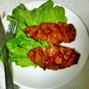 将腌制好的鸡肉裹上淀粉 再裹鸡蛋液 再裹淀粉 再裹鸡蛋液 最后裹上面包糠
