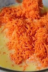 打入鸡蛋搅拌成糊,加入胡萝卜,加盐调味