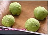 将B料(油皮:低筋面粉90克 抹茶粉10克 猪油50克)混合,简单揉成面团,成油皮,包裹保鲜膜,室温松弛10分钟。