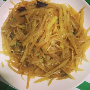 土豆大小根据自己需要挑选,切丝,过水泡一会儿。