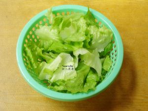 生菜洗净,沥干水,用手撕块;PS:用手撕的比较脆哦