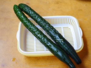 青瓜洗净,沥干水,放冰箱冷藏1小时;