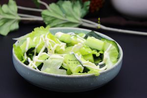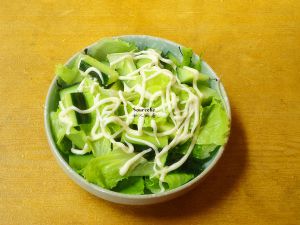 青瓜和生菜都好了,加上沙拉酱,拌均即可;