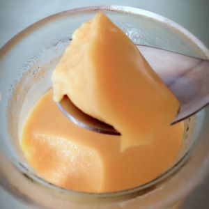 待2、3个小时后即可食用(我是早上做,下午吃的),嫩滑爽口的芒果布丁就大功告成了!