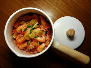 一斤虾刚好一个小奶锅的量。