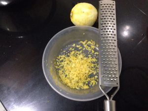 大家一定用的整个柠檬,首先用柠檬刨屑器或芝士刨将柠檬皮擦下,不要擦到白色部分,会苦哦~(图片是我做柠檬蛋糕的时候,擦柠檬皮的做法)