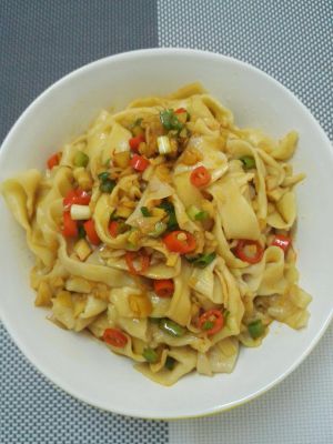 煮好的面过冷开水,油跟酱油加油,切好各种配料