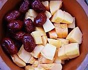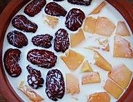 将冰糖水和鲜奶倒入红枣和木瓜中。