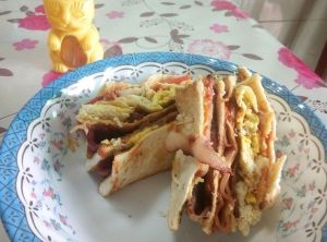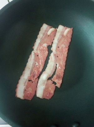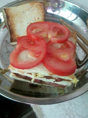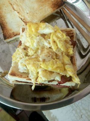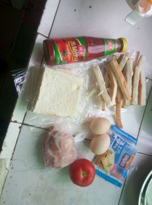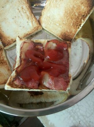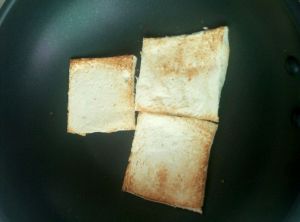 锅里不放油把面包烘干,烘香,两边像这样子就差不多了