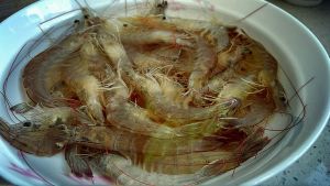 基围虾剪须、去肠胃洗净并背部剪开,放姜葱盐料酒腌制20分钟。