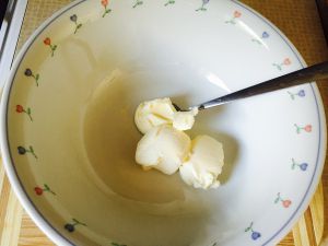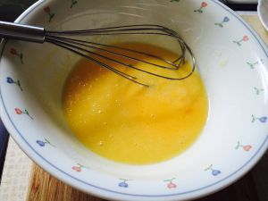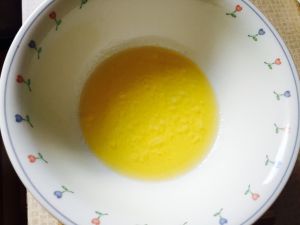 加入糖粉搅拌,三四分钟左右,打至发白无颗粒状(我这个图片是加过蛋液的,所以很黄),加入全蛋液,继续打至均匀