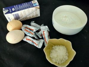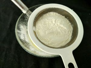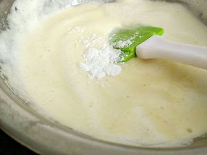 蛋白蛋黄划十字完全混合后,加入2.5-3g泡打粉,混合均匀。
