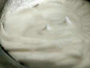 蛋白加入10g糖,3滴醋,打发至9-10分发。