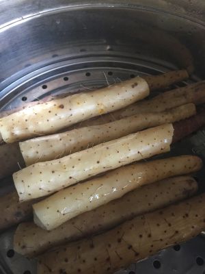 做好的山药泥上浇上樱桃酱可以开吃啦,冰箱冷藏后口感更好