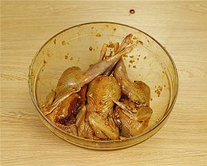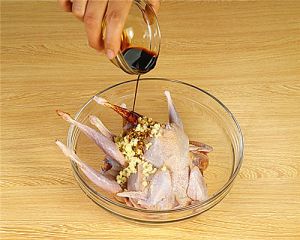 将鹧鸪放在盘子里,放入调味料搅拌均匀