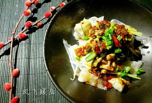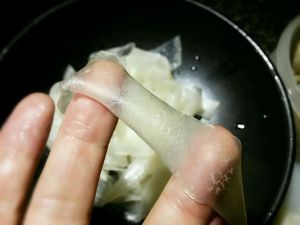 将面团浸入水,等待30分钟,做这个要有无比的耐心,为卖凉皮的同志们点赞!