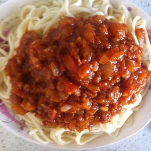 葱头柿子切碎,锅里放适量油,油热下入葱头碎炒几下入柿子炒一分钟再入牛肉粒,依次放入番茄酱,盐,酱油,姜粉,炒匀。