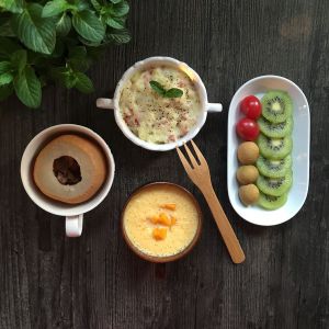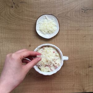 拌好的土豆泥放入焗碗中,撒上奶酪。