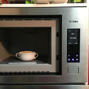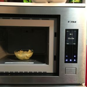 清水淹没土豆,放入方太微波炉,高火模式,5分30秒煮熟。