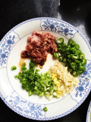 肉末、葱姜蒜末、个人喜好吃辣放了点青椒(放小米椒更好看)