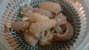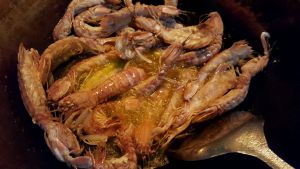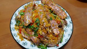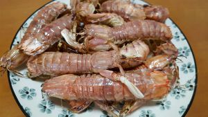 水没沥干得厨房纸擦干,不能的话。。。。多放油,皮皮虾入锅炸,一般我会复炸一次,二次炸出来色漂亮,焦脆