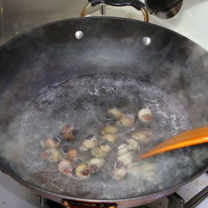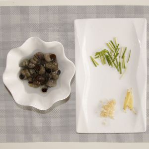 螺蛳洗净,小葱洗净切段、蒜剁成蒜蓉。