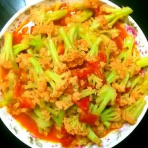 锅中烧开水,放入菜花煮2分钟,再捞出厉干待用