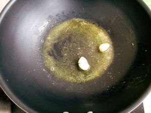 锅中加黄油,融化后放入大蒜,煎出香味。