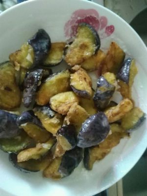 茄子回软后,油烧到8成热后,复炸茄子,炸到金黄