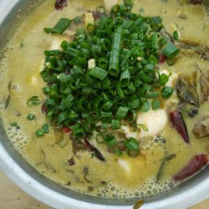 酸菜鱼做法:锅留底油,放入葱段,姜,干辣椒,小火煸炒出香放出入酸菜翻炒,炒出酸菜味,有料包放料包,没料包放十三香,放盐,到白醋与泡椒,味道自己调了,买料足的酸菜包还是比较好的,放好后加水放入鱼头水开鱼头煮一二分钟下鱼片,再煮一二分钟,鱼很好熟,别煮过了就烂了,煮好用过滤的东西把鱼捞出放盆里,锅里的水烧开,腌制时剩了一个蛋黄到入三倍的清水搅拌开来到入锅里,汤瞬间变成白色,好有味道,它的用处就在这,汤开后到入盆里,放入葱花,到入香油!就好了