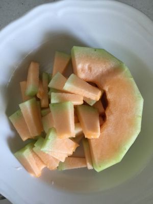 冰镇哈密瓜去皮切块,留一点绿瓤,口味更清爽