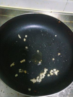 锅中加入一点油,然后加入蒜,翻炒一会。