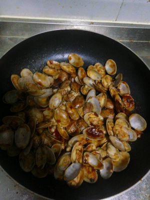 翻炒均匀,使每个花蛤上都能沾上酱汁。翻炒一会,即可出锅啦~~~