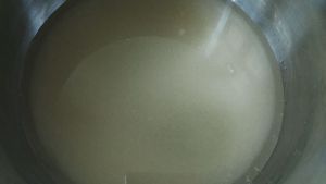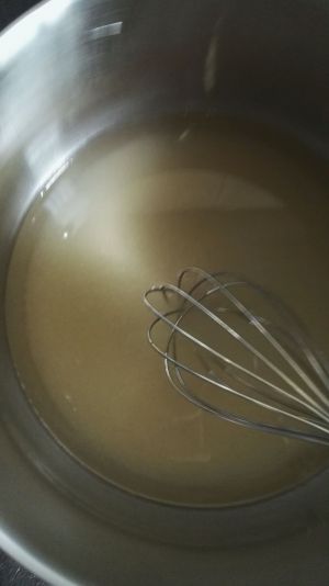 锅放入煤气灶上,开中火,轻轻搅拌糖水~直到白沙糖完全融化