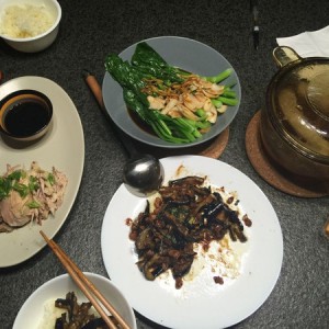 酱汁尝着味道正好时,调大火,迅速把茄子条和蒜一起倒进锅里,快速翻炒,茄子都挂上酱汁后迅速离火成盘,可以撒少许香菜。完成。
