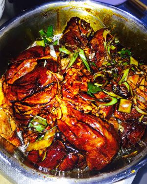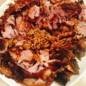 用适量的酱油和葱花放入肘子肉腌制半个小时以上。