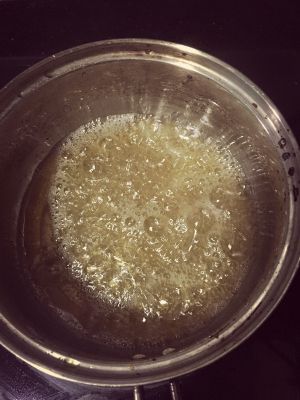 糖水煮开后小火慢慢熬,熬到很稠了,用筷子捞起一点浸在冷水中五秒凝固然后吃起来不粘手就好了
