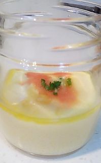 将少许油在锅中烧热,浇在鱼子酱上。待蒸蛋七分熟时,再将浇好油的鱼子酱放入蒸蛋之上,在锅中焖一下。