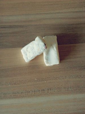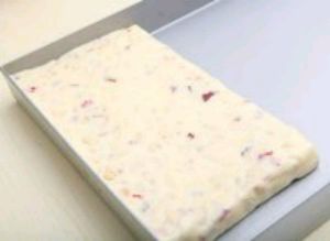 趁热倒入铺油纸的模具中,压紧后放入冰箱中冷藏2小时,取出切割成需要的大小,包上糯米纸和糖纸即可。