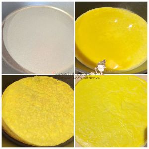待蛋液凝固后翻面,几秒钟后盛出,小熊的被子就做好了;