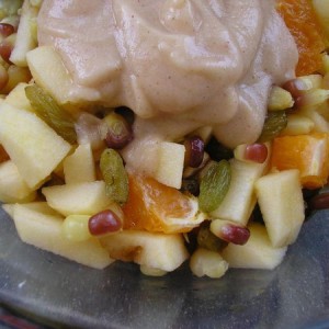 色拉酱:苹果小半个、山药一截、去核山楂两粒打成泥;