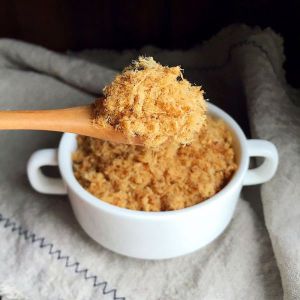 用筷子翻拌焙干即可(喜欢肉松绒状的入料理机打一下即可)
