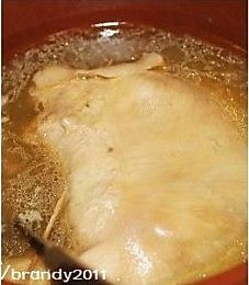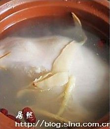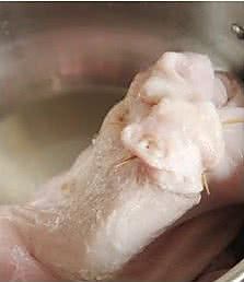 直到猪肚膨胀,浮沫没有,捞出,倒去原来的水,再重新加入末过猪肚面的水,放入其他的配料味。