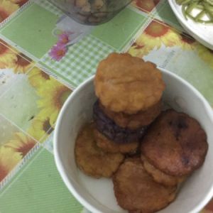 把做好的南瓜饼直接油炸就可以开吃了(也可以直接蒸着吃)
