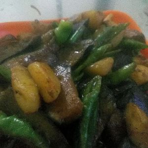 然后放入辣椒,进行炒制。放盐蚝油,生抽,糖。最后,勾芡出锅。