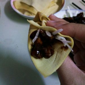 此时,降切好的肉放入料酒,盐巴(不用太多,毕竟是甜的口味),鸡蛋清,淀粉,生抽抓匀。嘿嘿忘记拍腌肉的图了。然后把肉放进冰箱里备用。再准备一碗放了葱和姜的水,凉白开就行。
