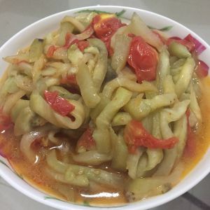 锅里放油,油热放入蒜瓣,超出香味,放入茄子西红柿,大火烧,茄子变软,转小火加盐,烧出汤汁加玉米淀粉,转大火收汁.加入适量鸡精,关火.