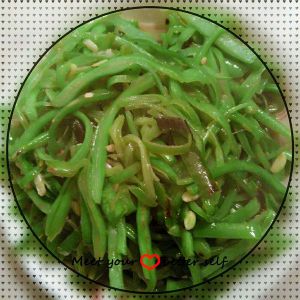 加入辣椒,炒至颜色加深,放入盐,适当放点醋。