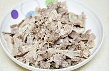 将煮好的羊肉切片或者块,取一大碗,盛入煮好的粉丝、木耳,调入热的羊肉汤,加入羊肉后撒香菜、油泼辣子即可