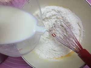 低筋面粉,泡打粉,小苏打,过筛,筛入蛋液中